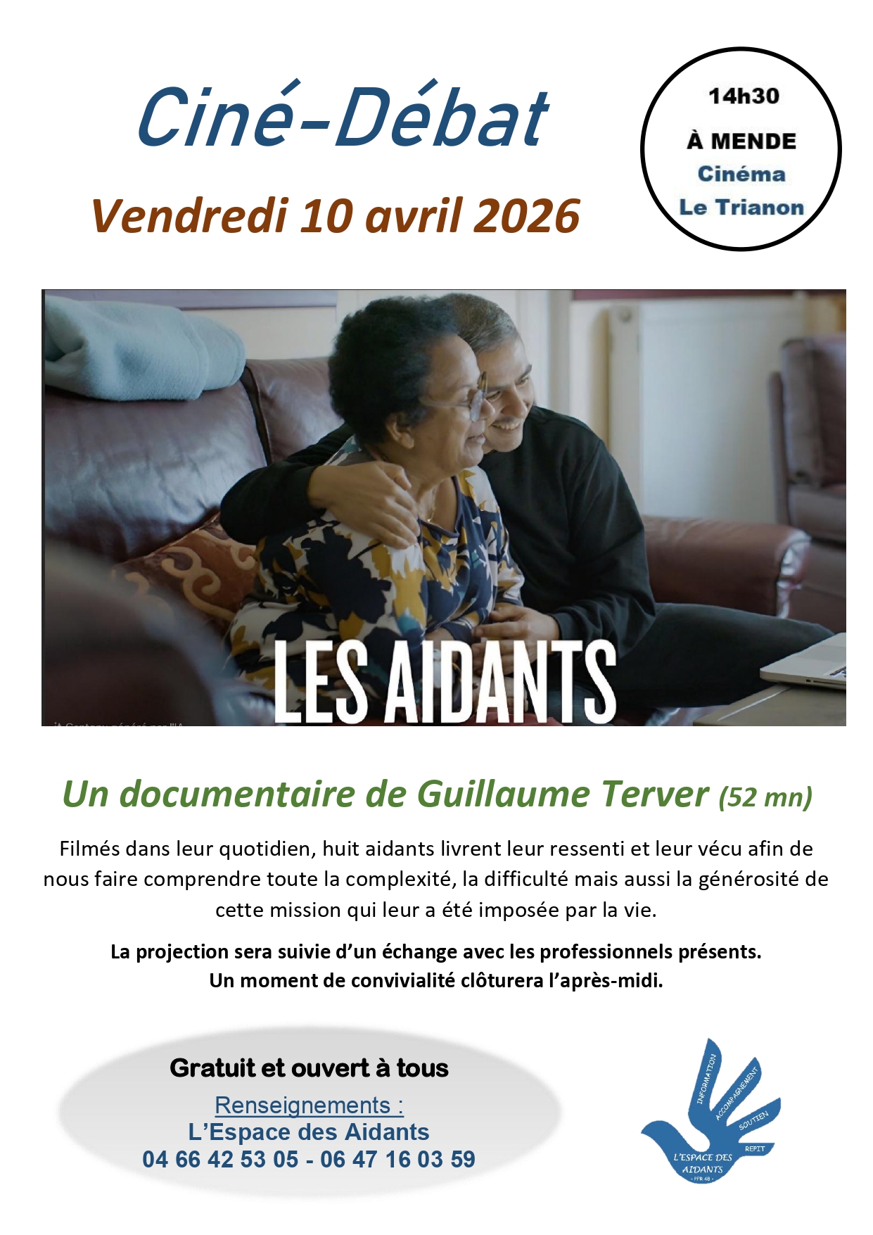 En partenariat avec le cinéma le Trianon, l'Espace des Aidants organise un après-midi Ciné Débat à Mende, le vendredi 10 avril à 14h30.