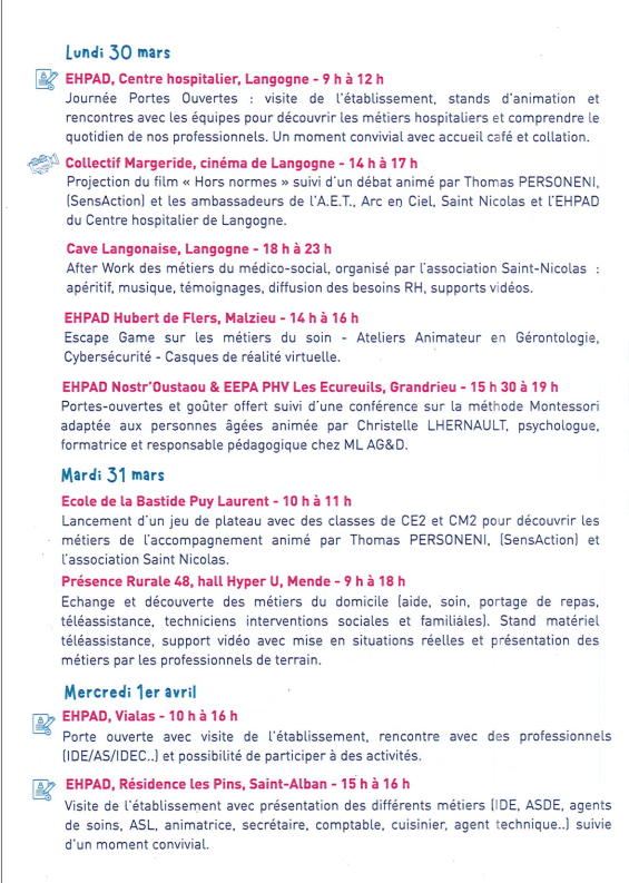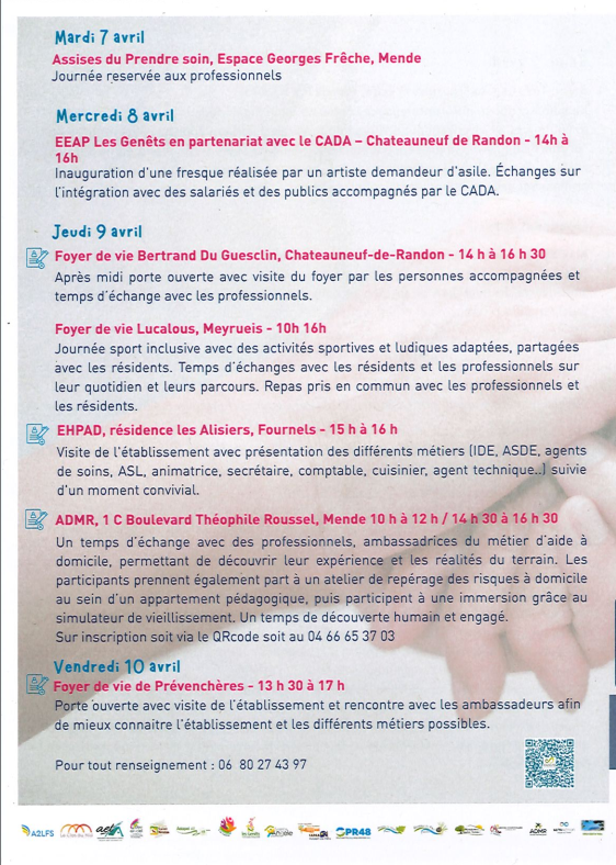 Du 30 mars au 10 avril : portes ouvertes et animations sur les métiers du prendre soin.